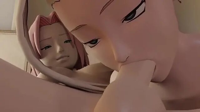 In a Naruto-themed fantasy, Sakura is a sultry futanari with a big, chubby cock. She sucks it eagerly, teasing the viewer with her kink. Later, she performs double penetration (dp) with her own futanari cock and another one.