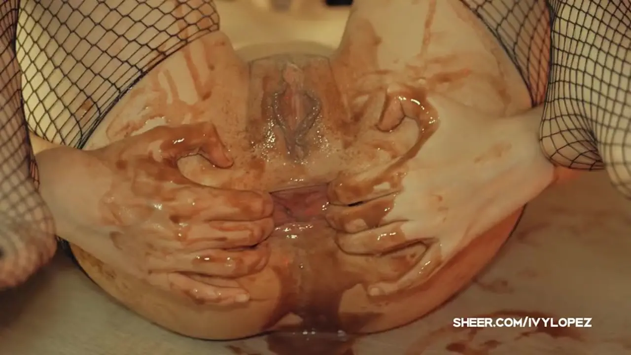 Ivy's gaping anal hole filled with chocolate