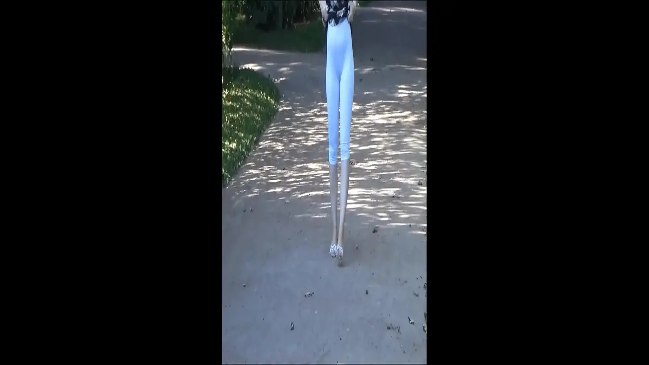 This alluring girl is caught on camera walking down the street in her white leggings, teasing everyone with a glimpse of her huge, toned ass. She deliberately shakes it and shows more, causing a scene in public. People can't help but stare at her beautiful derriere.