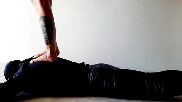 Trampling Dominatrix Nika walks on the back of her slave with bare feet
