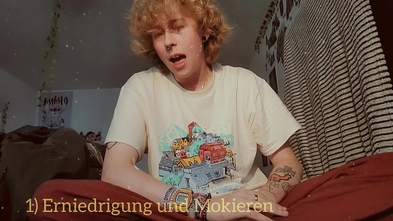 A hot blonde German MILF with tattoos and piercings dominates her footslave in a POV roleplay. She orders him to worship her feet, and he licks and kisses them eagerly. The dominant mom also gives him a rough facials at the end.