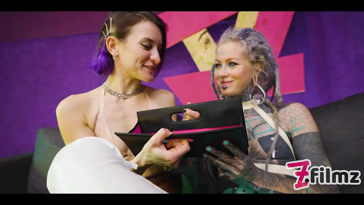 Tattooed sex toy enthusiast Anuskatzz plays with a massive double steel dildo while showing off her extreme anal gape. She then shares the toy with her tattooed friend, using it to get fucked and fill her gaping hole. The girls also enjoy some girl-on-girl action with the toy.