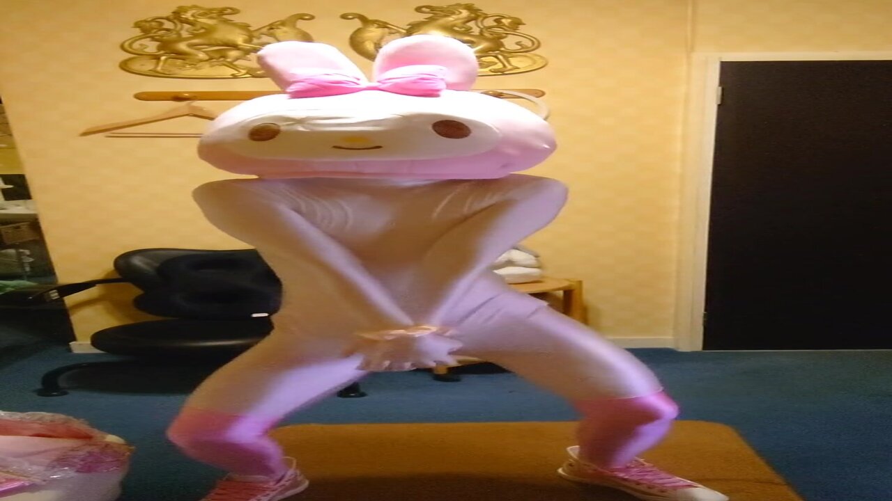 Cute cosplaying girl dances with electric vibe and panties