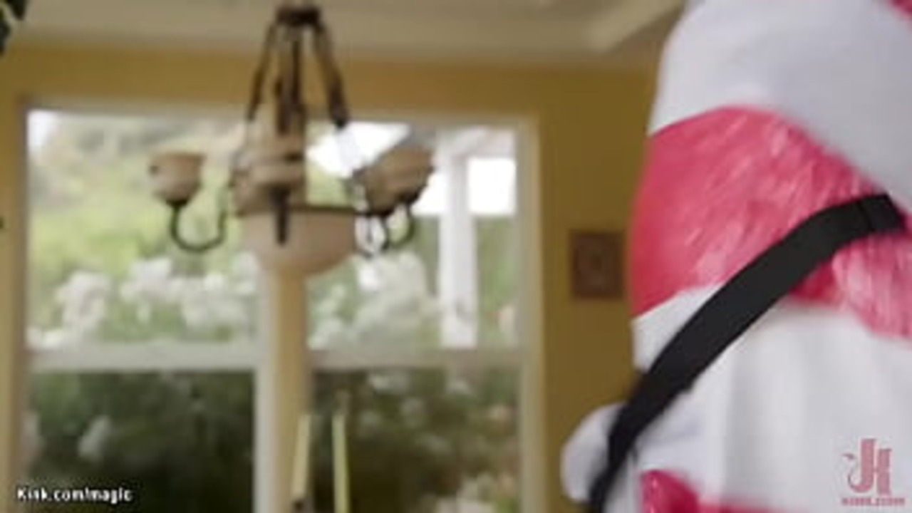 In a kinky family roleplay scene, a dominant stepdad and stepmom teach their goth teenie stepdaughter the ways of submission and anal sex. They tie her up and gag her while dominating her in various positions. She enjoys the forbidden pleasure as they both take turns fucking her ass.