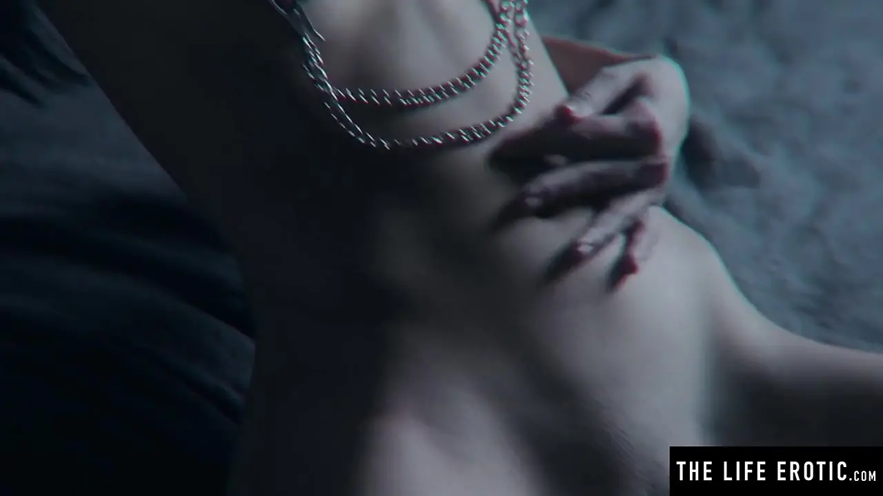 This kinky goth girl with a nose and nipple piercing gets off by rubbing her clit with a flashlight. She fingers her tight, hairy pussy and uses the flashlight to explore her depths.